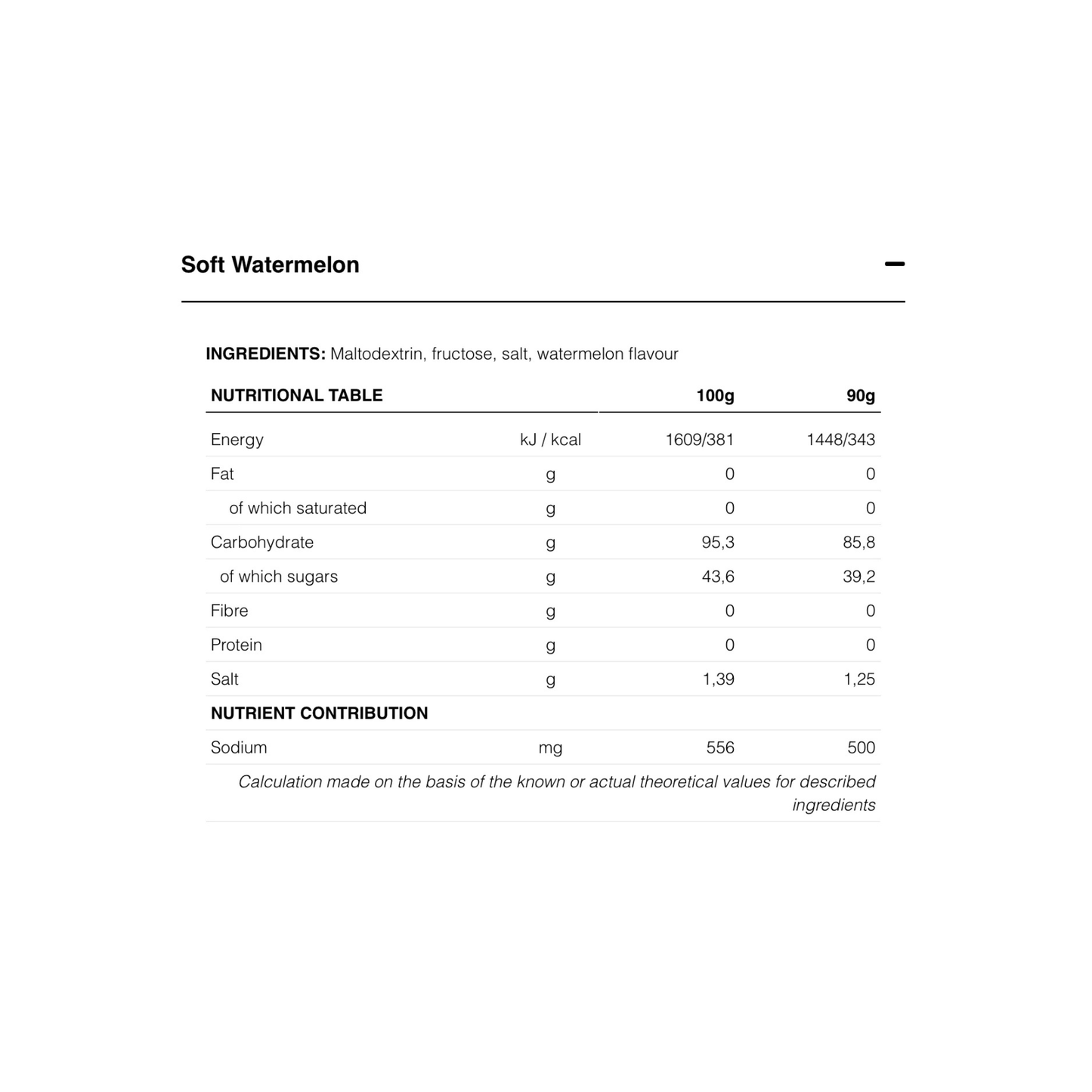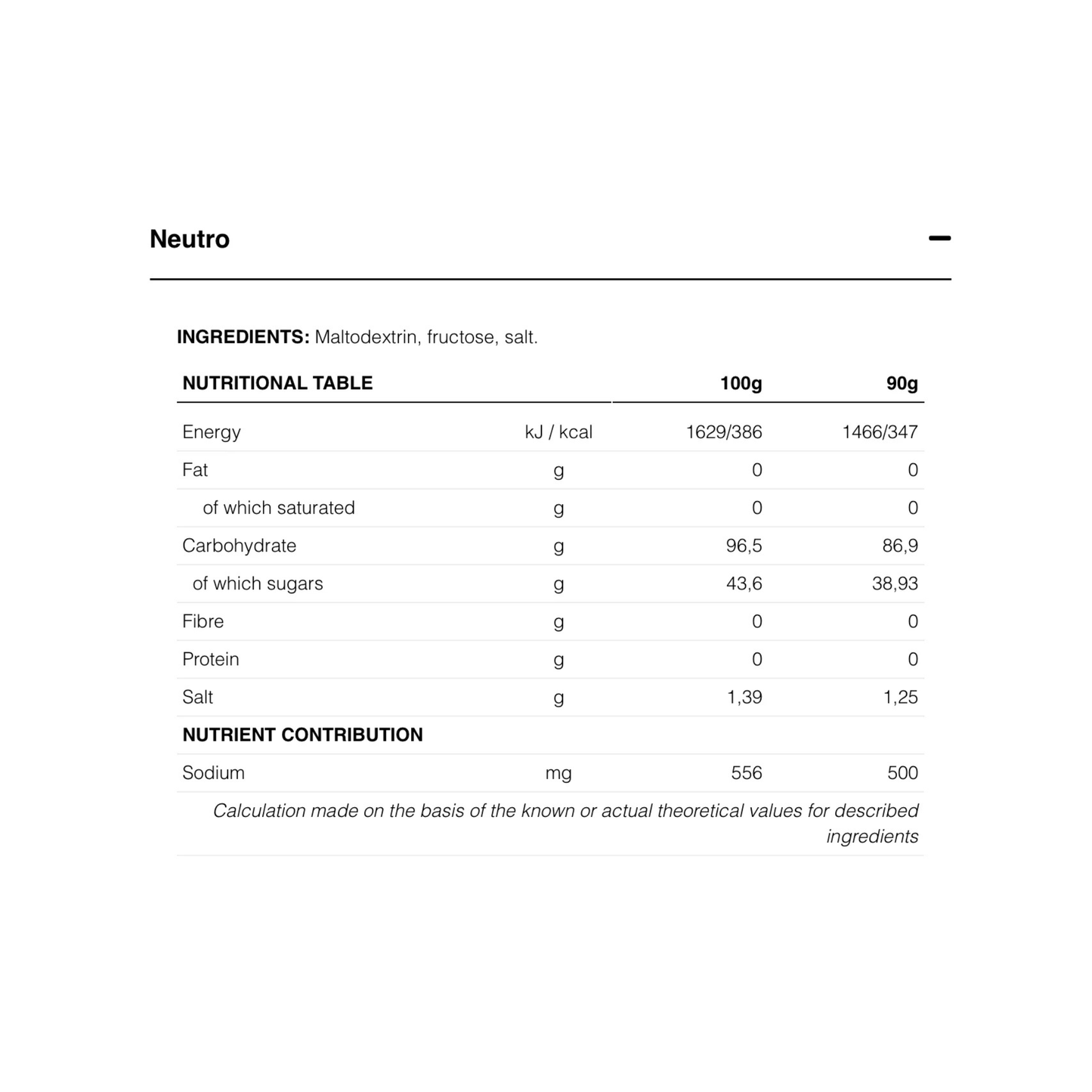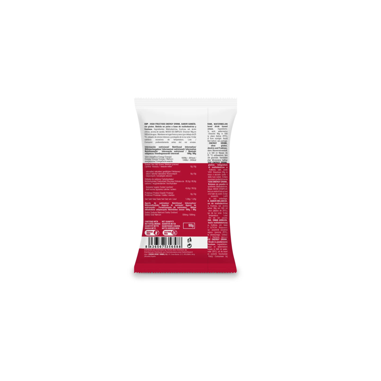 HIGH FRUCTOSE ENERGY DRINK provides a 87 g supply of carbohydrates and 500 mg of sodium per serving from the maltodextrin and fructose, in a proportion of 10:8. This formulation, based on “multiple transportable carbohydrates”, has shown through studies* that during extended exercise, the use of carbohydrates that are absorbed in the intestine by different transporters is the only way to increase the rate of assimilation and oxidation of exogenous carbohydrates above 60 g/hour.* To that end, researchers confirm that the ideal thing is to combine sources of carbohydrates. We opted for Maltodextrin, to control molecular weight/osmolarity, the other one being Fructose.