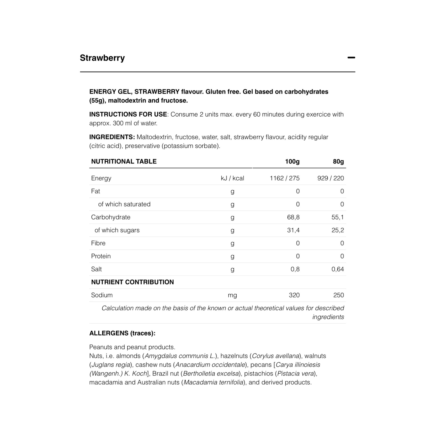 High Fructose Gel provides a 55 g supply of carbohydrates and 250 mg of sodium per gel from the maltodextrin and fructose, in a proportion of 10:8. This formulation, based on “multiple transportable carbohydrates”, has shown through studies* that during extended exercise, the use of carbohydrates that are absorbed in the intestine by different transporters is the only way to increase the rate of assimilation and oxidation of exogenous carbohydrates above 60 g/hour * To that end, researchers confirm that the ideal thing is to combine sources of carbohydrates. We opted for Maltodextrin, to control molecular weight/osmolarity, the other one being Fructose. MALTODEXTRINE: Is absorbed in the small intestine by the transporter SLG-1 and converted into glucose for delivery to the cells, quickly providing them with energy. This is a high glycaemic index, a rapid rise in blood glucose levels, with instant release of energy. Rapid gastric emptying thanks to its high molecular weight and low osmolarity, favouring digestion and reducing secondary gastrointestinal effects. FRUCTOSE: Is absorbed in the small intestine using the GLUT5 transporters, different to those that absorb other carbohydrates. The absorbed fructose travels from the intestine to the liver by GLUT2 transporters and tops up the stores of hepatic glycogen lost during intense physical exercise. Gradual absorption occurs, with a steady and progressive release of energy This is why the combination of maltodextrin and fructose enables the digestion and assimilation of high amounts of carbohydrates per hour, reducing the risk of gastric problems.
